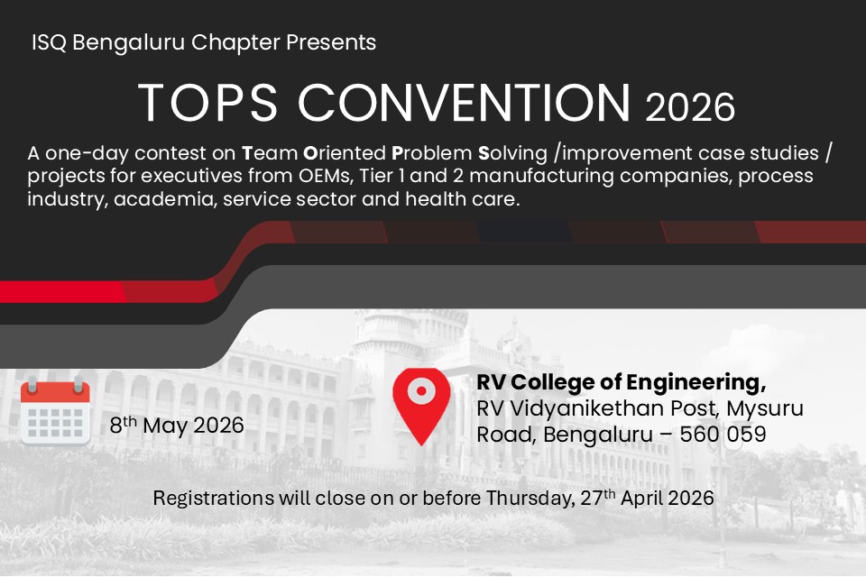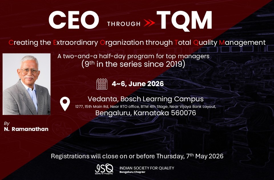 Indian Society for Quality is being promoted as a ‘Not-for-Profit’ Society by Quality Professionals with the objective of providing a National Forum for Quality Education and for advisory role. The society will act as a catalyst and facilitation body for exchange of information and experience regarding Quality Management principles, technology and practices. It has been registered as a society under Societies Registration Act of 1860.