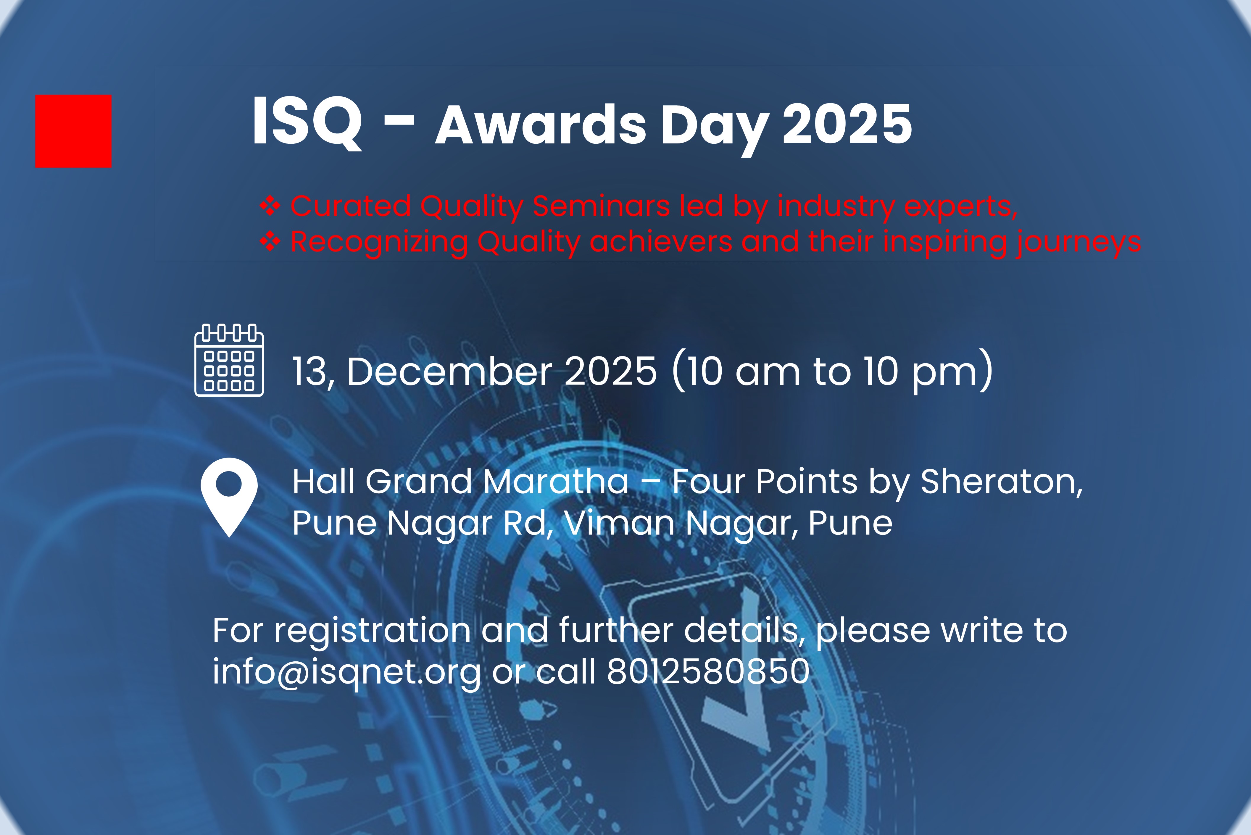 Indian Society for Quality is being promoted as a ‘Not-for-Profit’ Society by Quality Professionals with the objective of providing a National Forum for Quality Education and for advisory role. The society will act as a catalyst and facilitation body for exchange of information and experience regarding Quality Management principles, technology and practices. It has been registered as a society under Societies Registration Act of 1860.